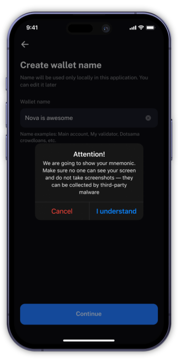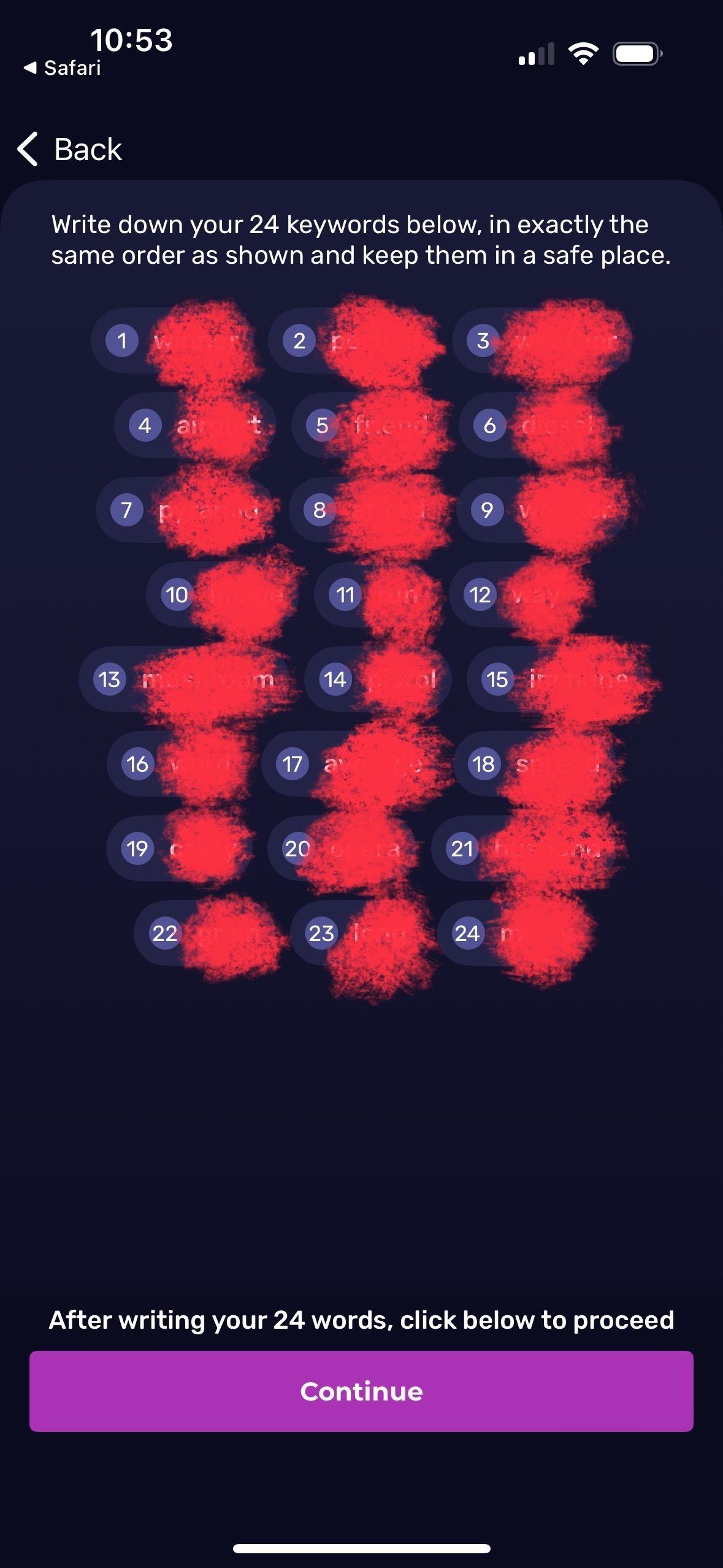 - You will be shown your seed phrase. Make sure to write it down and store it in a safe place.