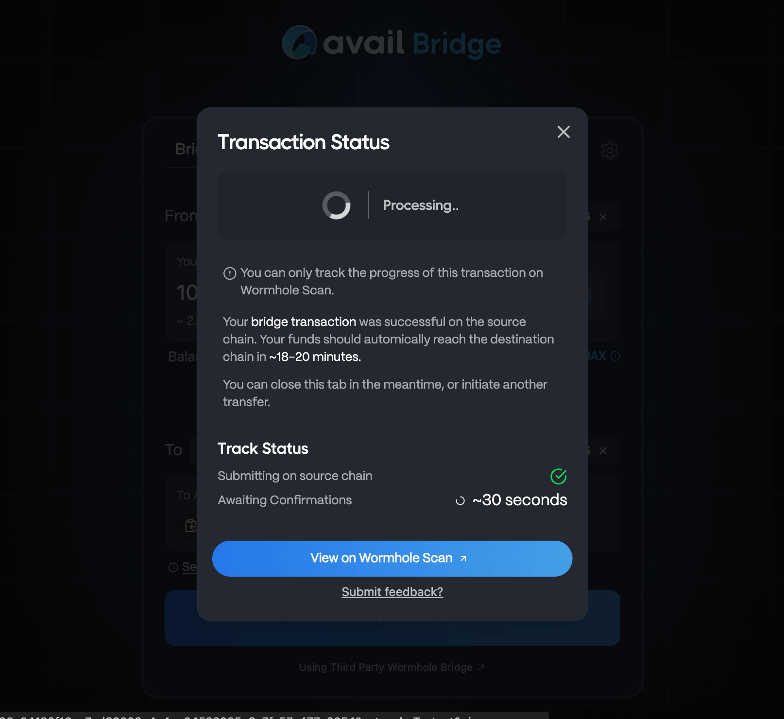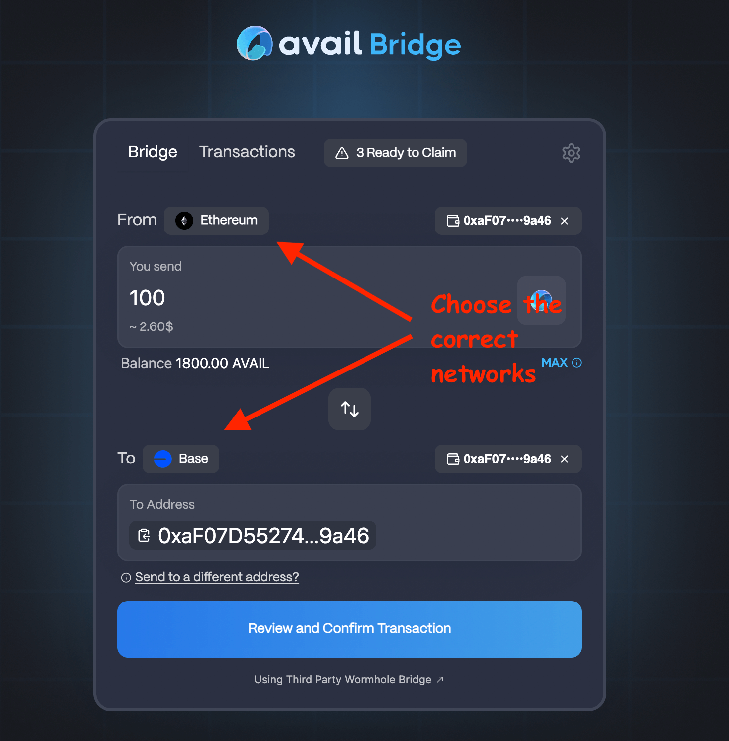 This exact process can be reversed to bridge AVAIL from Base to Ethereum.