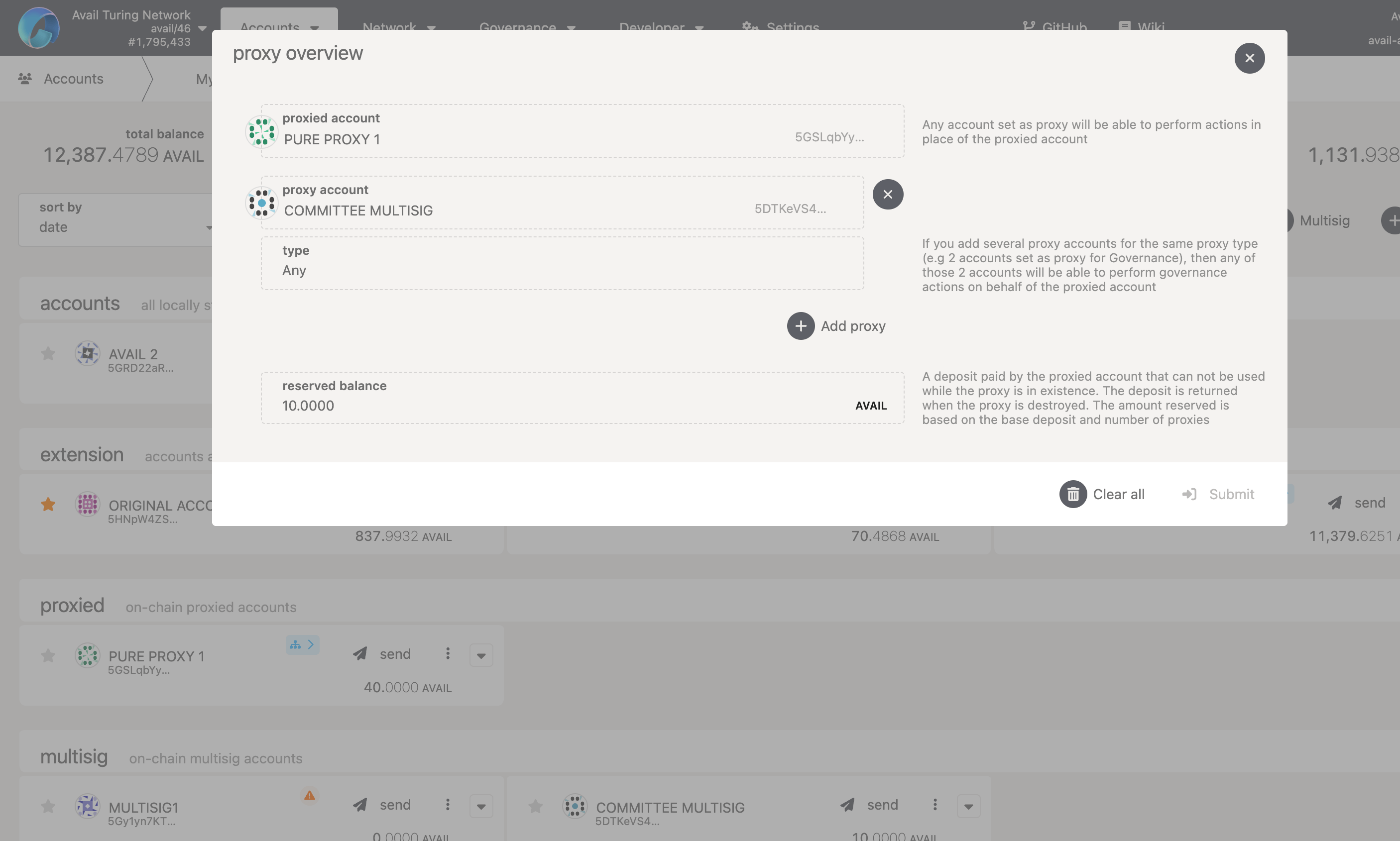 - The proxied account in-turn will be controlled by a multisig account that will act as it’s proxy.