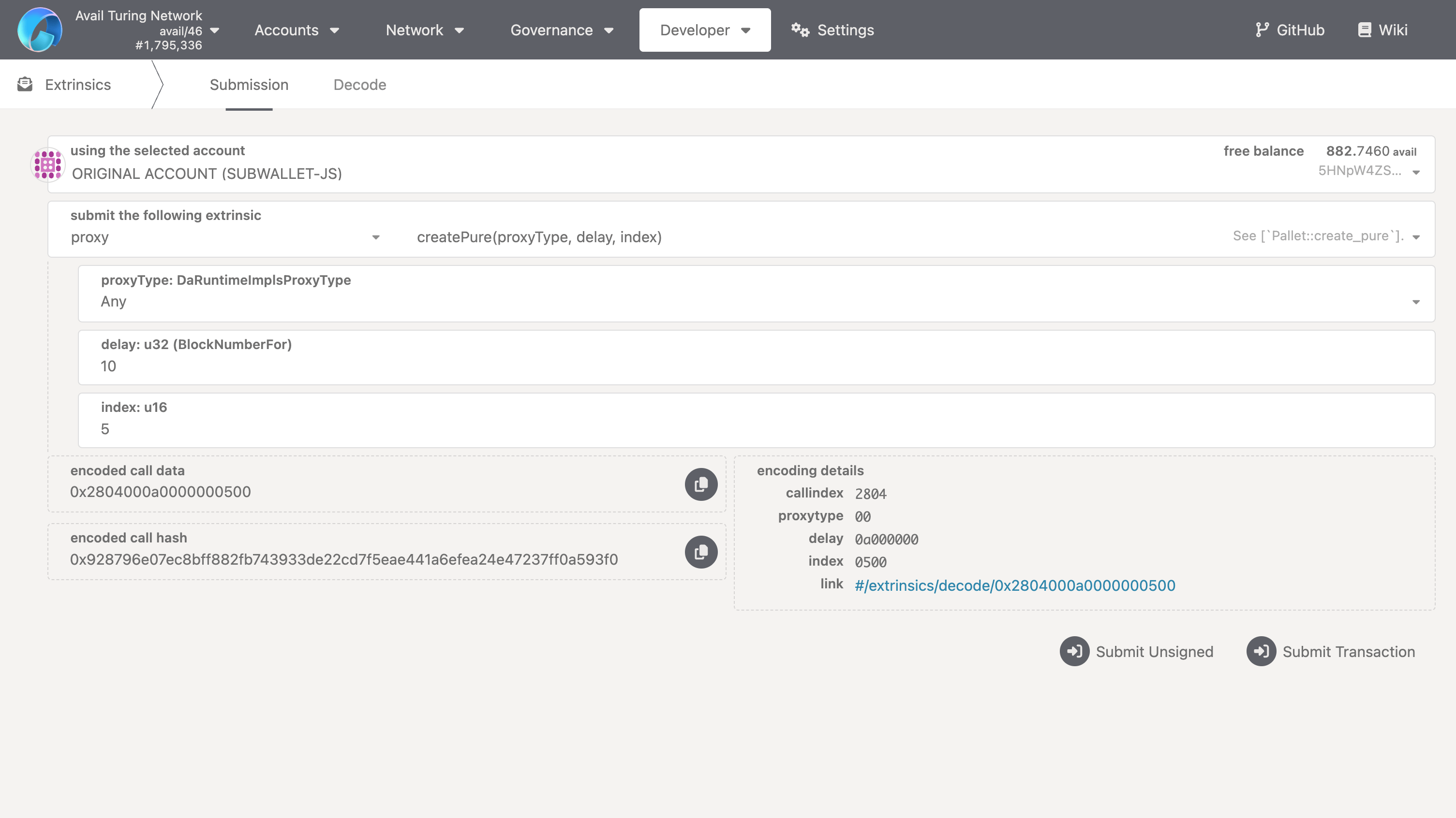 proxy.createPureextrinsic. - Copy the address of the pure proxy from the event logs.