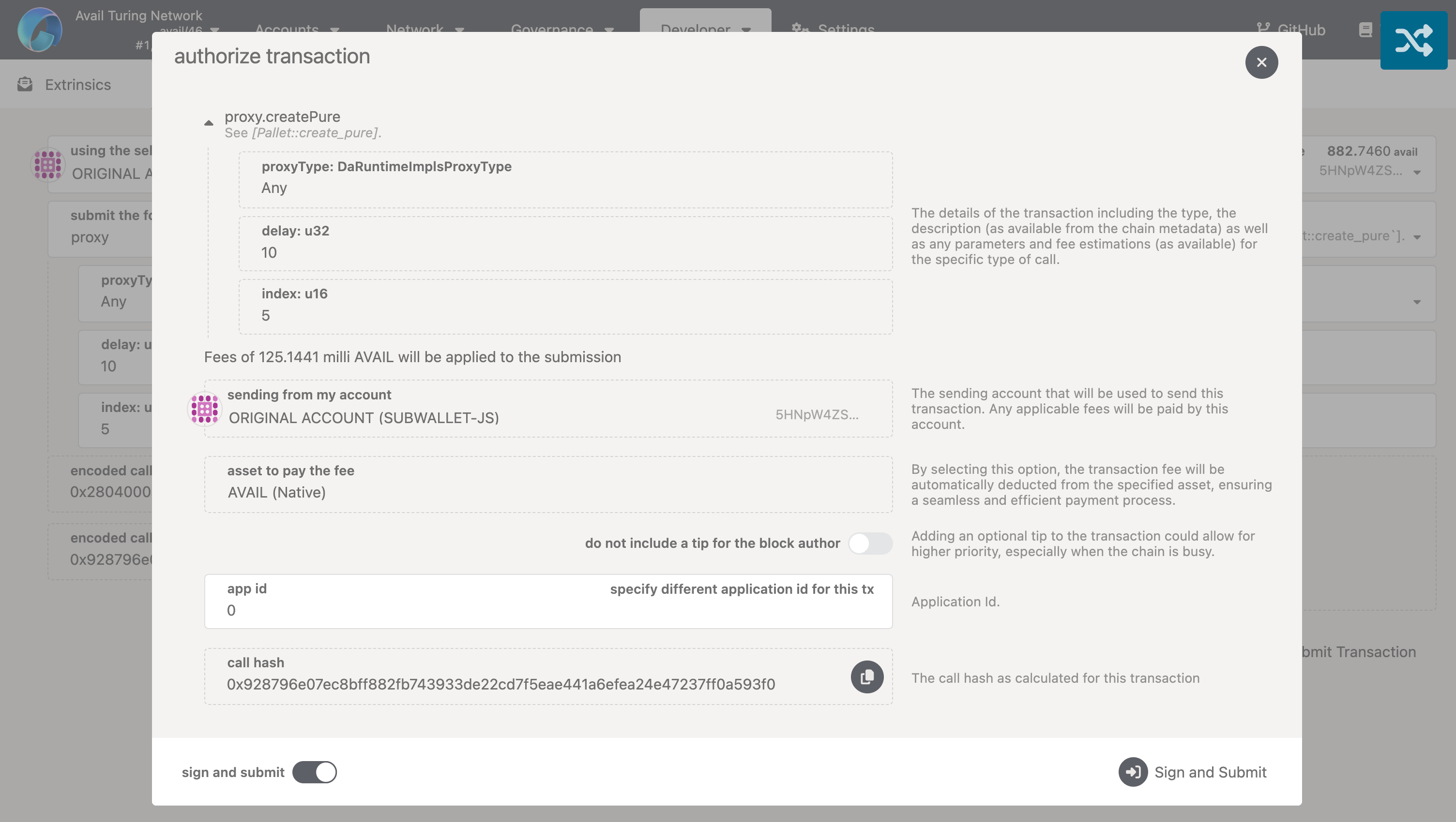 - Review the transaction details and submit it by clicking on the ‘Sign and Submit’ button.